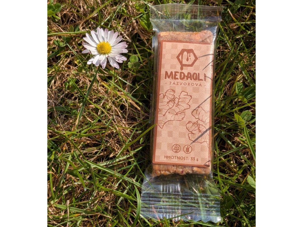 Složení: Med (35 %), ovesné vločky přirozeně bez lepku, jablko sušené, mandle, brusinka sušená, olej lněný, zázvor mletý (1 %), sůl, antioxidant: tokoferol (vitamin E)